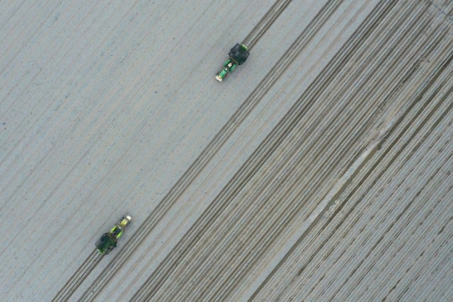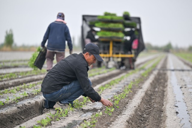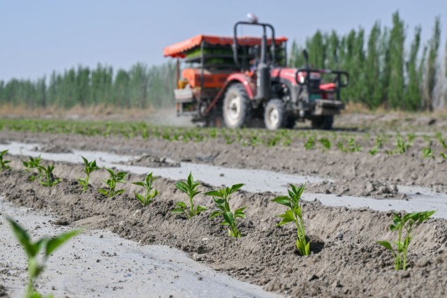 一场春雨不期而至,打湿土地也“染”绿树梢,天山南麓迟来的春意愈加肆意延伸。踏上田垄,透过绿茵般的麦田远了望去,一台台辣椒从动移栽机正笔曲地驶过郊野,播下两行嫩绿的辣椒苗后,荡起一缕微尘。走进雨后松软的地里,辣椒从动移栽机由一台拖沓机牵引,拖沓机安拆有斗极从动系统,驾驶员不碰标的目的盘车辆也能从动调整标的目的,确保拖沓机沿铺好地膜的地垄标的目的行驶。 |